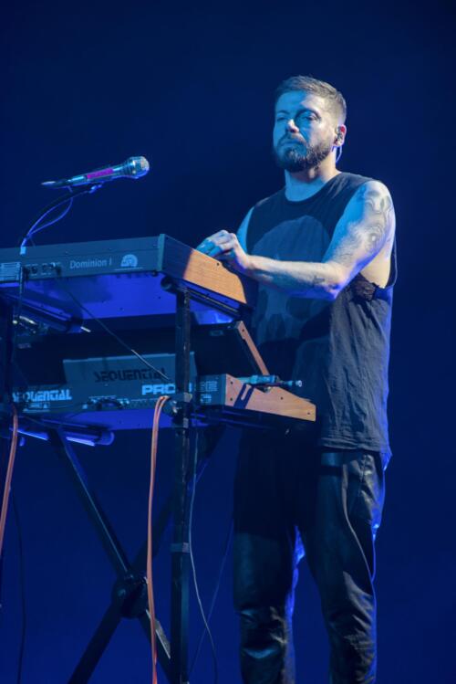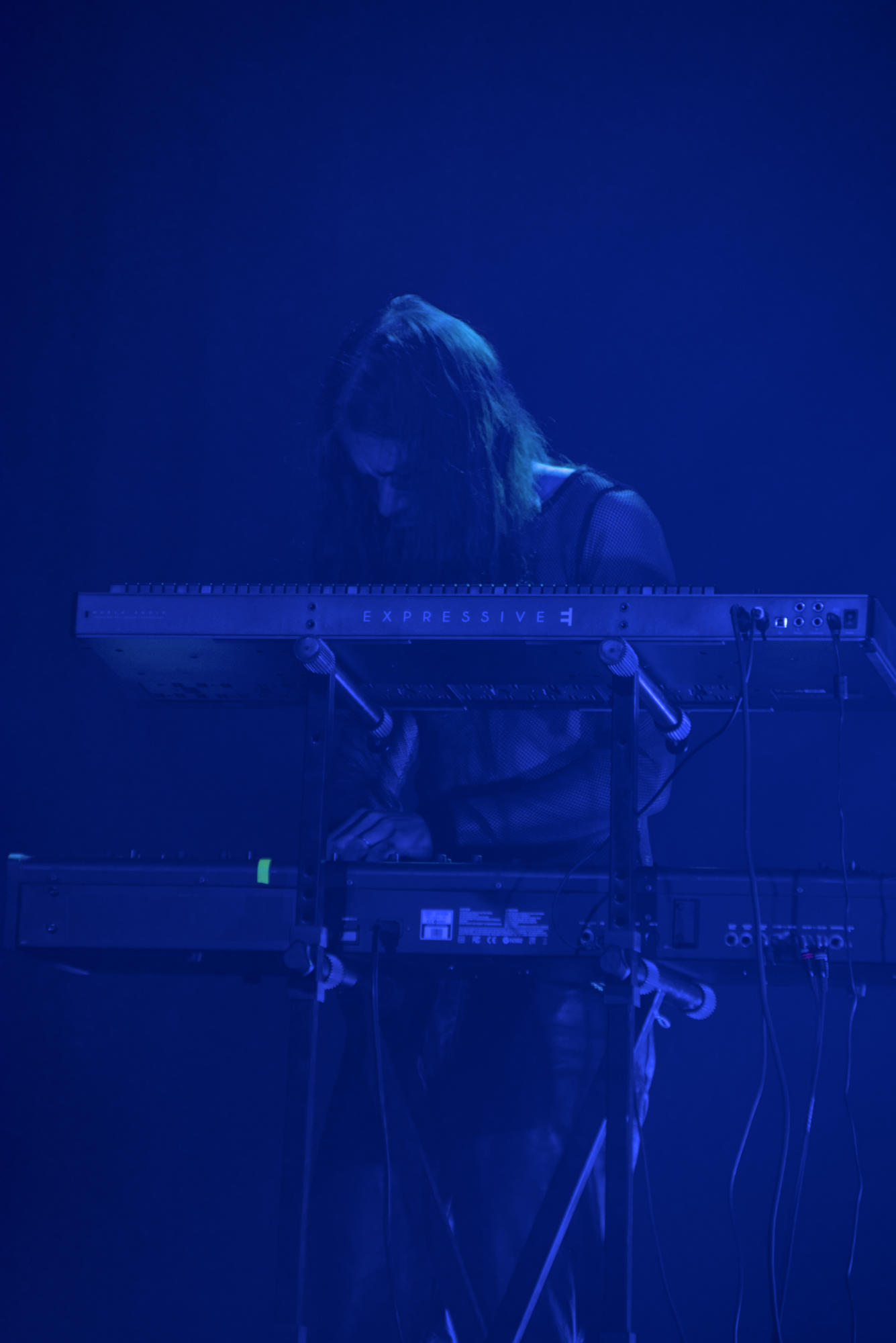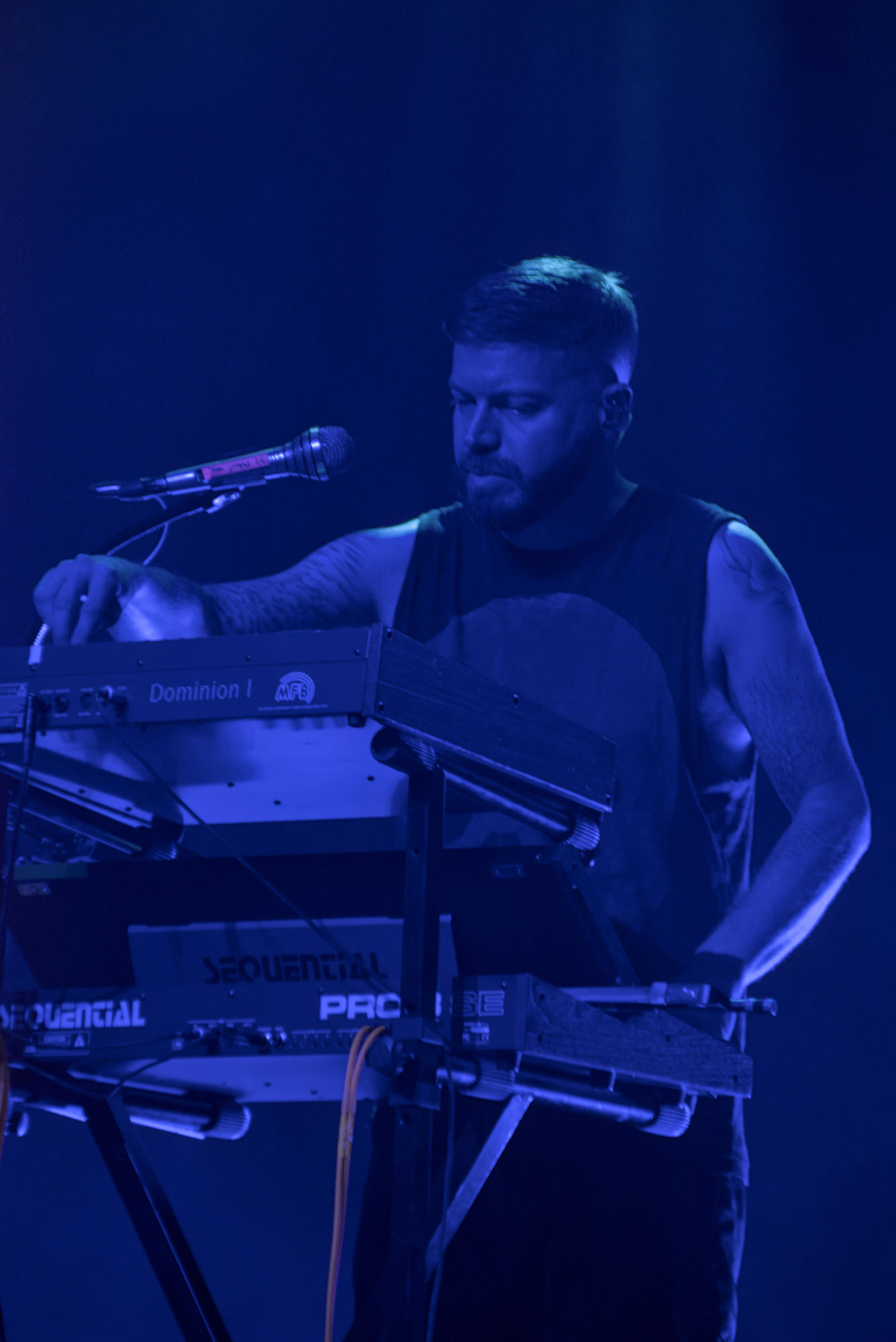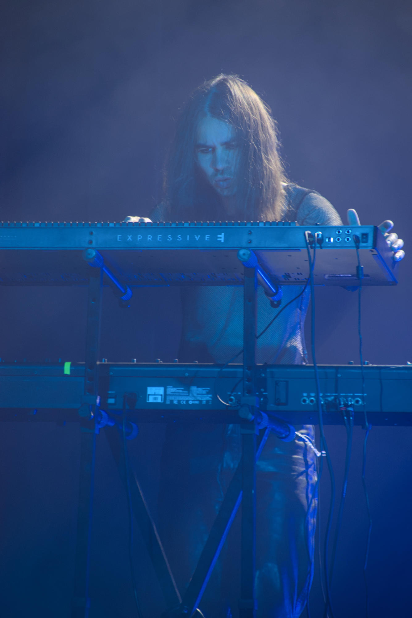 J'ai pu être ainsi surpris que la moitié du set était plutôt orientée Electro/Trip-Hop avec lui aux claviers et une boite à rythme en backing track. De plus, il m'a semblé qu'il gérait lui-même en direct les effets type vocoder sur ses doublements de voix.