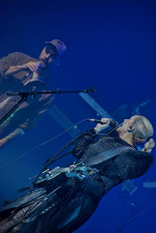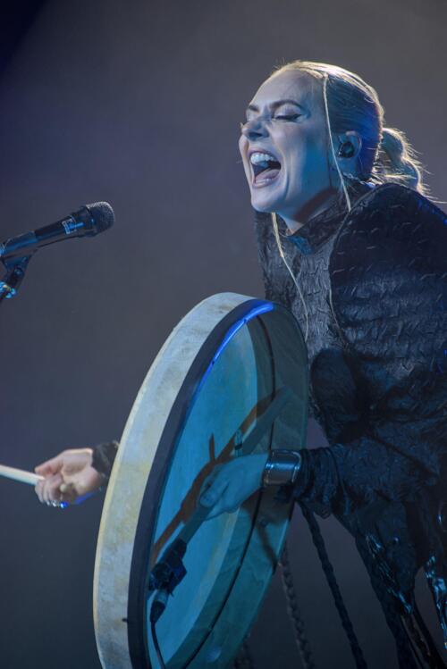 Pour l'occasion, Eivør était donc avec une tenue un peu extravagante avec des nattes qui pendent. Une robe qui n'a pas manqué de la faire sourire quand elle a souligné sa praticité pour se coincer partout. Et bien sûr, comme prévu, la robe s'est coincée durant Í Tokuni dans le pied de micro ce qui nous a valu un petit fou rire de sa part sous vocoder sur ce qui devait être le début d'un couplet. Bref, une belle parenthèse bien rigolote.