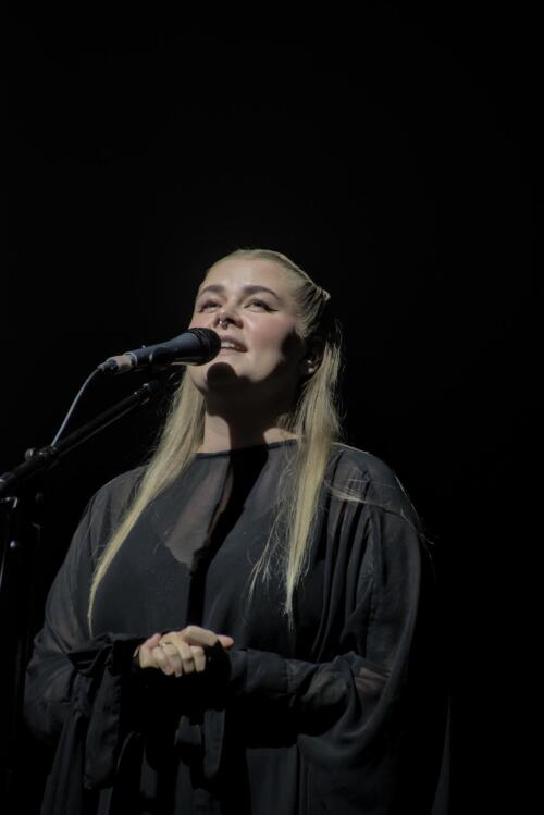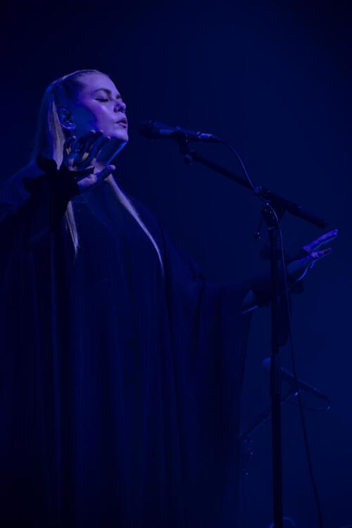 Si en 2022, son EP Vera allait sortir, aujourd'hui c'était son album Í Ævir qu'elle était venu défendre. Un album prévu pour Halloween qui était déjà disponible au merchandising sous la forme d'un vinyle coloré spécial pour la tournée ; les CD étant déjà épuisés alors que le premier tiers de la tournée n'était même pas terminé. Une occasion pour elle de le produire avec beaucoup d'entrain et d'excitation, car, comme lors de son dernier passage, son projet n'est pas encore totalement disponible et n'attend qu'à être découvert.