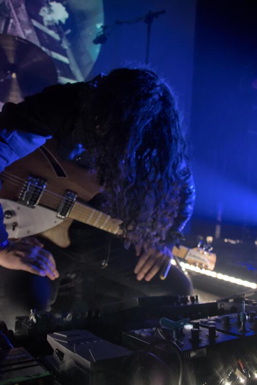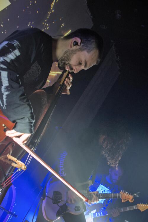 Ainsi, une pause dans nos aventures et nos rêves fait toujours bizarre, mais cela s’explique certainement par le contexte de la première partie. Comme le dit bien Clément : “il n’est pas simple de jouer devant un nouveau public” surtout quand le groupe “n’est pas sur les plateformes de streaming” (NDLR : la discographie du groupe n’est disponible que sur Bandcamp ou sur YouTube). Les concerts deviennent alors pour ce quatuor leur “propre plateforme de streaming”. On découvrira à l’occasion de ce bref discours les noms des techniciens : Thierry qui a improvisé ce soir-là les lumières aux côtés de Romain qui façonne le son du combo “depuis belle lurette”.