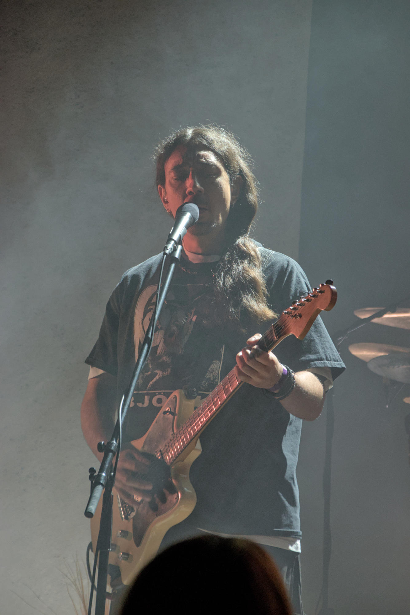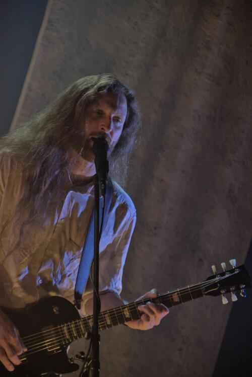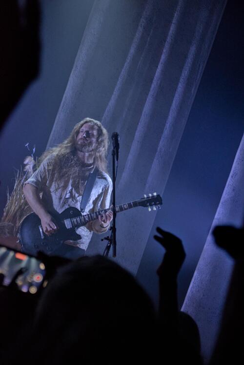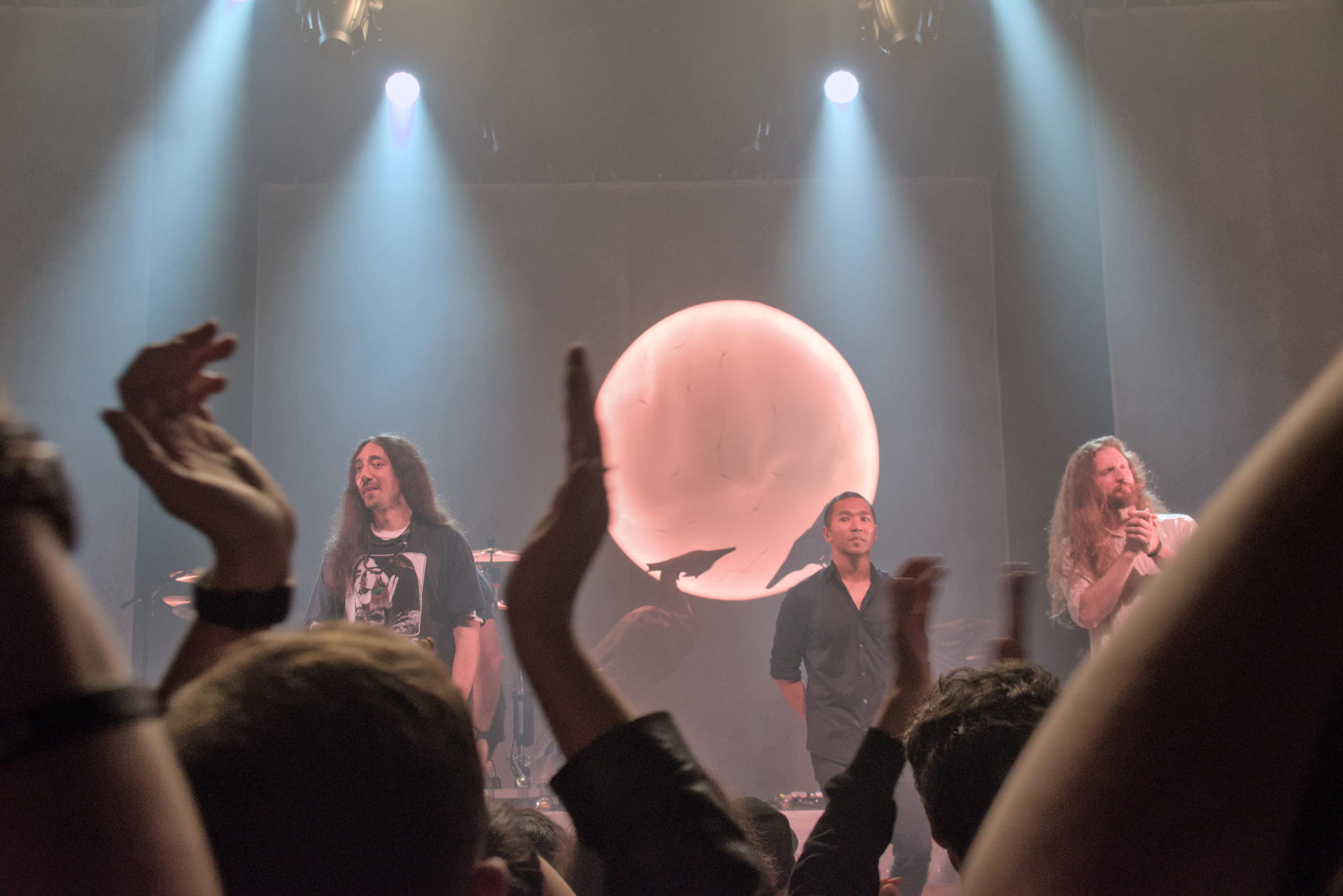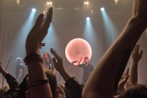 Neige, n’étant pas un grand bavard, on aura quand même le droit à plusieurs interactions tout au long du concert de près d’une heure et demie en comptant le rappel. Car si l’on oublie les mercis silencieux, Neige n’a pas hésité à rappeler à son auditoire d’aller écouter ce super groupe de Post-Rock Toulousain que l’on a pu (re)découvrir auparavant (et on peut dire que plusieurs personnes ont bien suivi l’exemple), mais aussi de rappeler que cela faisait chaud au cœur de voir un public avec un tel engouement devant lui. Car, comme on l’a appris après le concert lors de la conférence, Alcest n’a jamais été un projet censé fonctionner et que Neige est toujours surpris que la musique qu’il a créé pour lui en extériorisant son histoire soit appréciée ou trouve un écho en d’autres personnes.