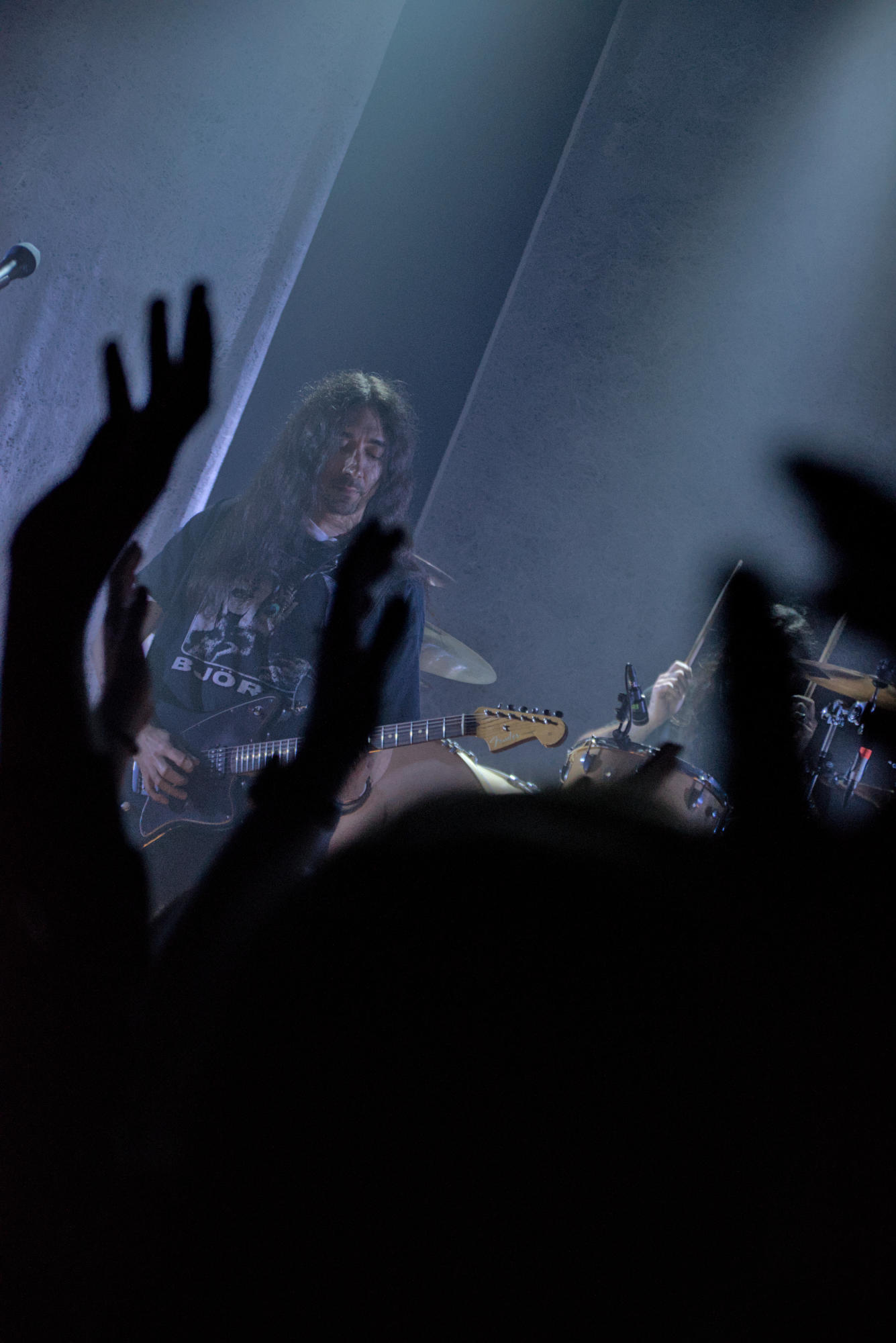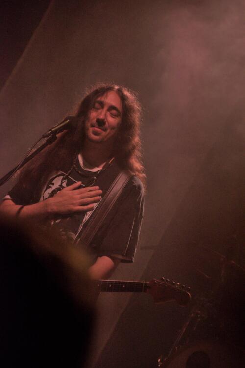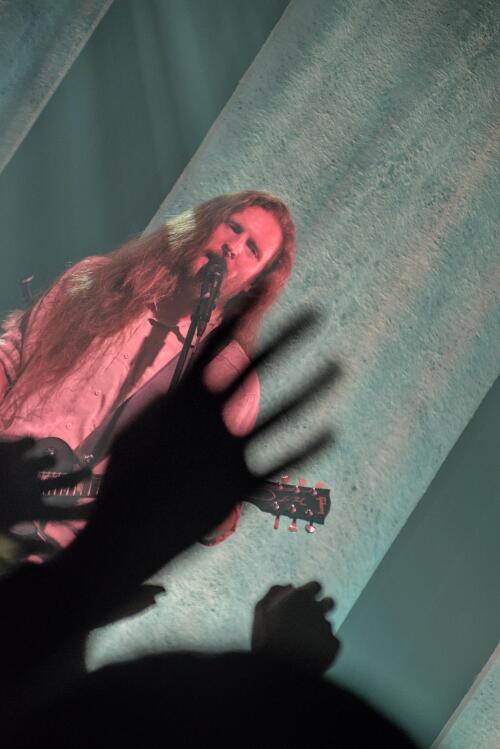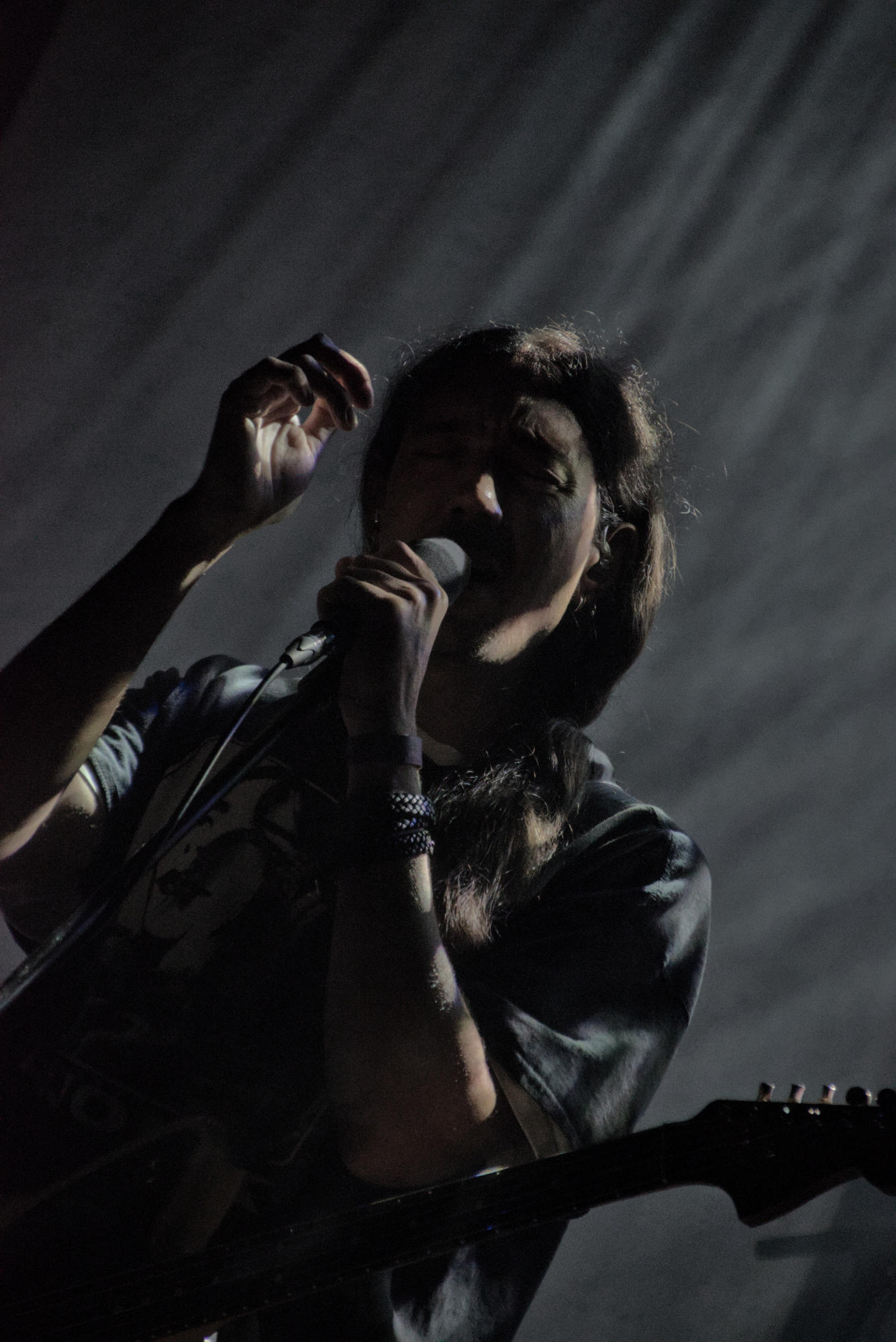 Neige, n’étant pas un grand bavard, on aura quand même le droit à plusieurs interactions tout au long du concert de près d’une heure et demie en comptant le rappel. Car si l’on oublie les mercis silencieux, Neige n’a pas hésité à rappeler à son auditoire d’aller écouter ce super groupe de Post-Rock Toulousain que l’on a pu (re)découvrir auparavant (et on peut dire que plusieurs personnes ont bien suivi l’exemple), mais aussi de rappeler que cela faisait chaud au cœur de voir un public avec un tel engouement devant lui. Car, comme on l’a appris après le concert lors de la conférence, Alcest n’a jamais été un projet censé fonctionner et que Neige est toujours surpris que la musique qu’il a créé pour lui en extériorisant son histoire soit appréciée ou trouve un écho en d’autres personnes.