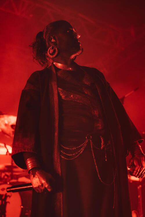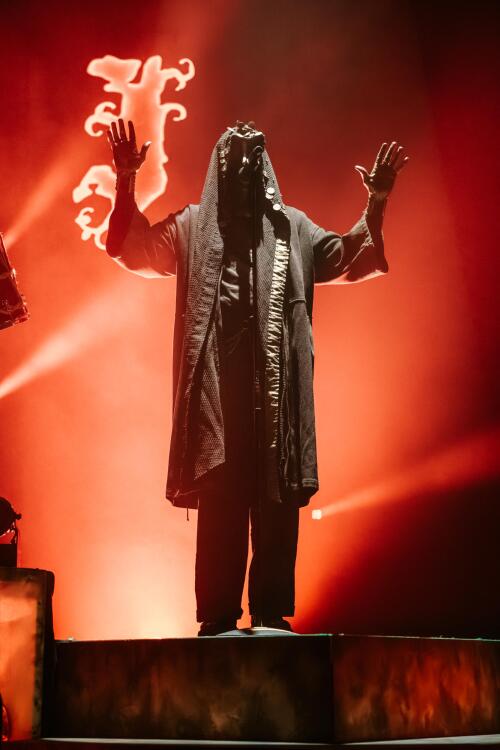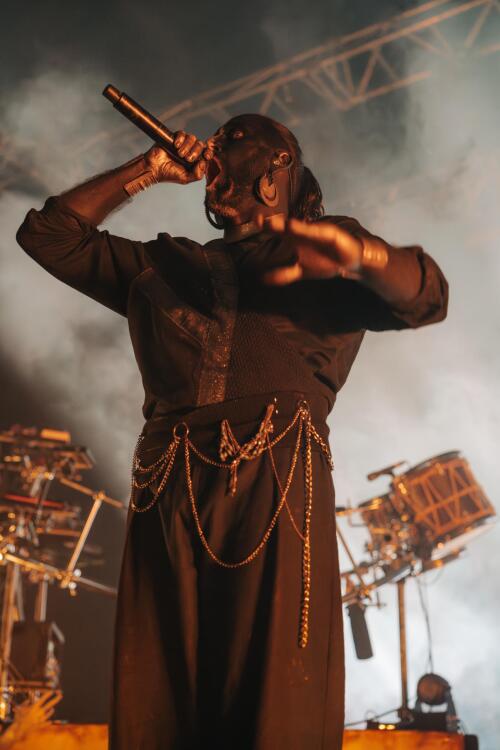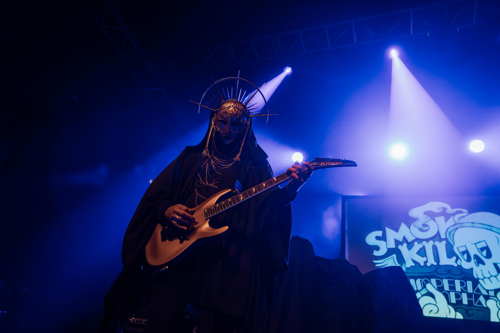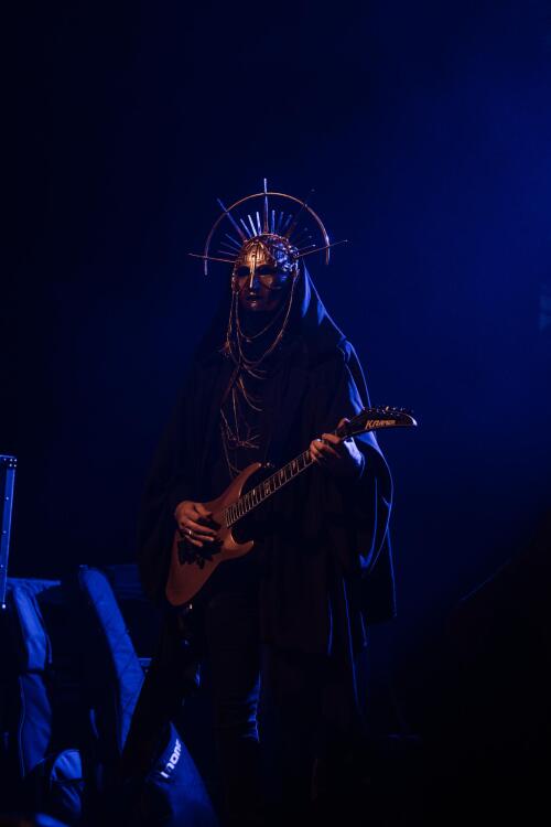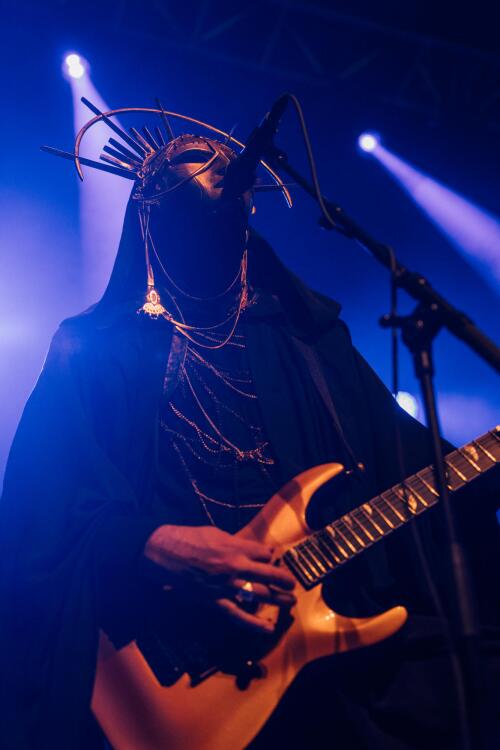 La soirée a commencée par Imperial Triumphant, imposant un rituel spécial : masques dorés, dissonances suffocantes et grandiloquence urbaine. Le trio new-yorkais nous a érigé un mur sonore complexe, où le black metal se tord sous des influences jazz et industrielles. Entre luxe décadent et chaos millimétré, le Transbordeur s'est transformé en cathédrale d'ombres dorées. Les fans du groupe ont été ravi du show, cependant, un tel OVNI dans cette affiche (oui oui, malgré qu'Igorrr soit déjà un OVNI dans la scène, on peut le dire ici !), n'a pas réussi à convaincre une grande majorité du public. Le groupe ne s'est pas pour autant découragé, malgré une salle peu réceptive.