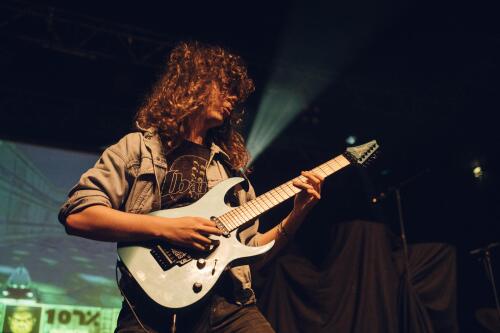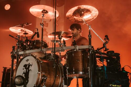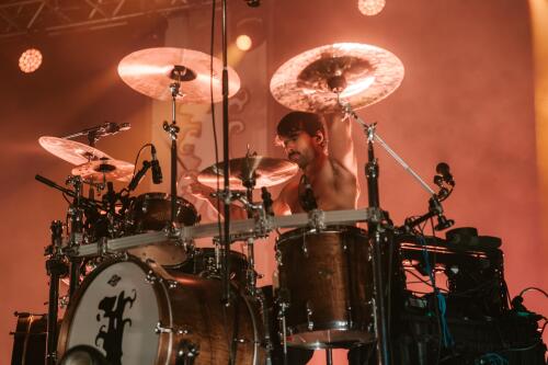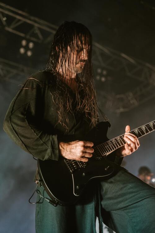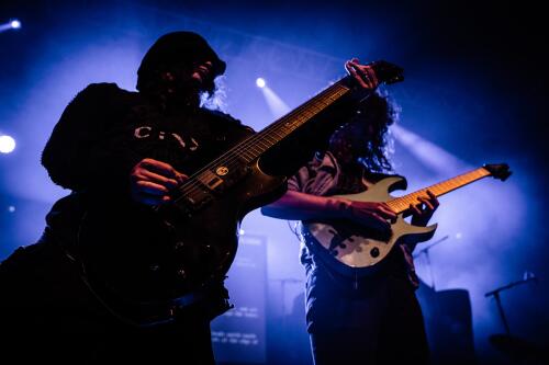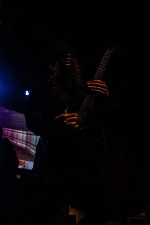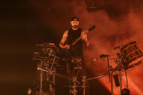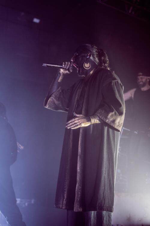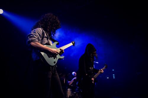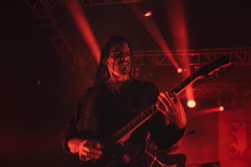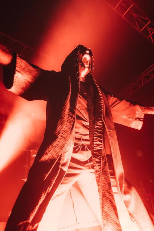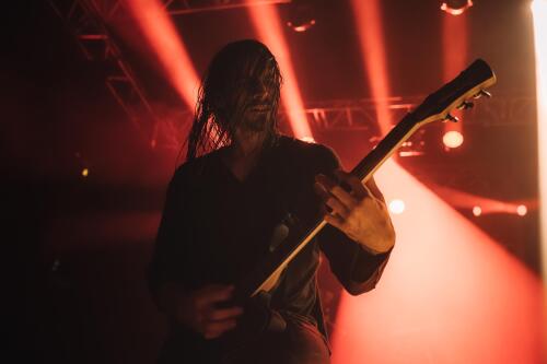 En seconde partie, Master Boot Record change totalement le style et l'ambiance de la salle. Dans un bain de lumière multicolore et de glitchs rétro, le groupe a délivré un metal en flux de données binaires, mêlant riffs acérés et nappes 8-bit. Les bruits de lecteurs disquettes et les visuels DOS ont réveillé la nostalgie des millenials de manière immédiate, cette nostalgie des PC lents et bruyants de la fin des années 90 et des jeux à l'esthétique pixelisée. Un set robotique et hypnotique qui aura touché le cœur du public, notamment avec une reprise de la mythique musique du jeu DOOM. La salle bondée s'est enflammée dès les premières notes du set. Prestation complètement réussie pour MBR qui aura préparé au mieux le public pour la tête d'affiche.