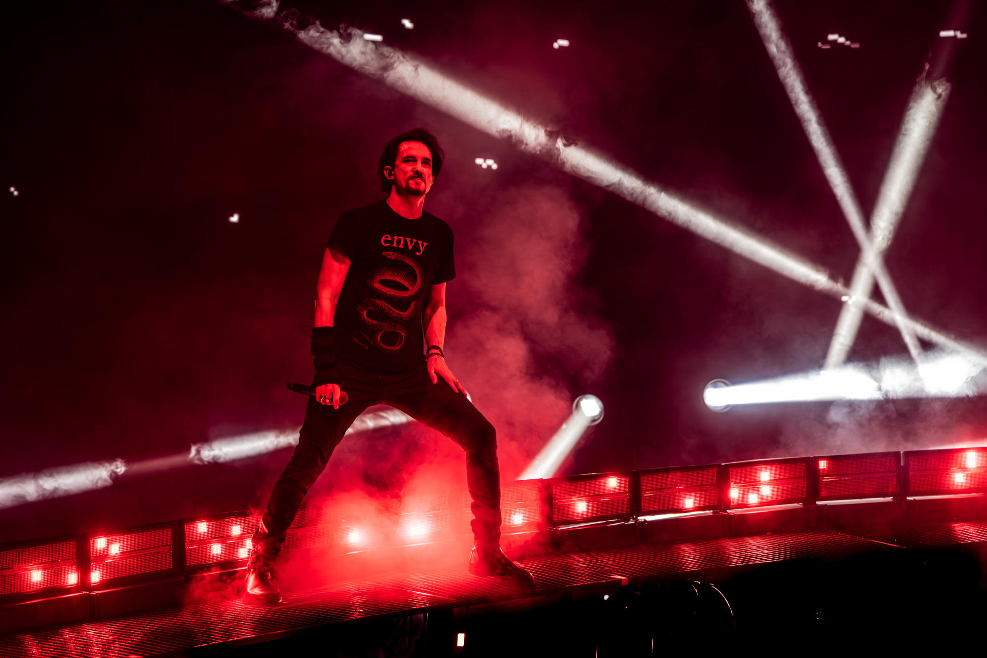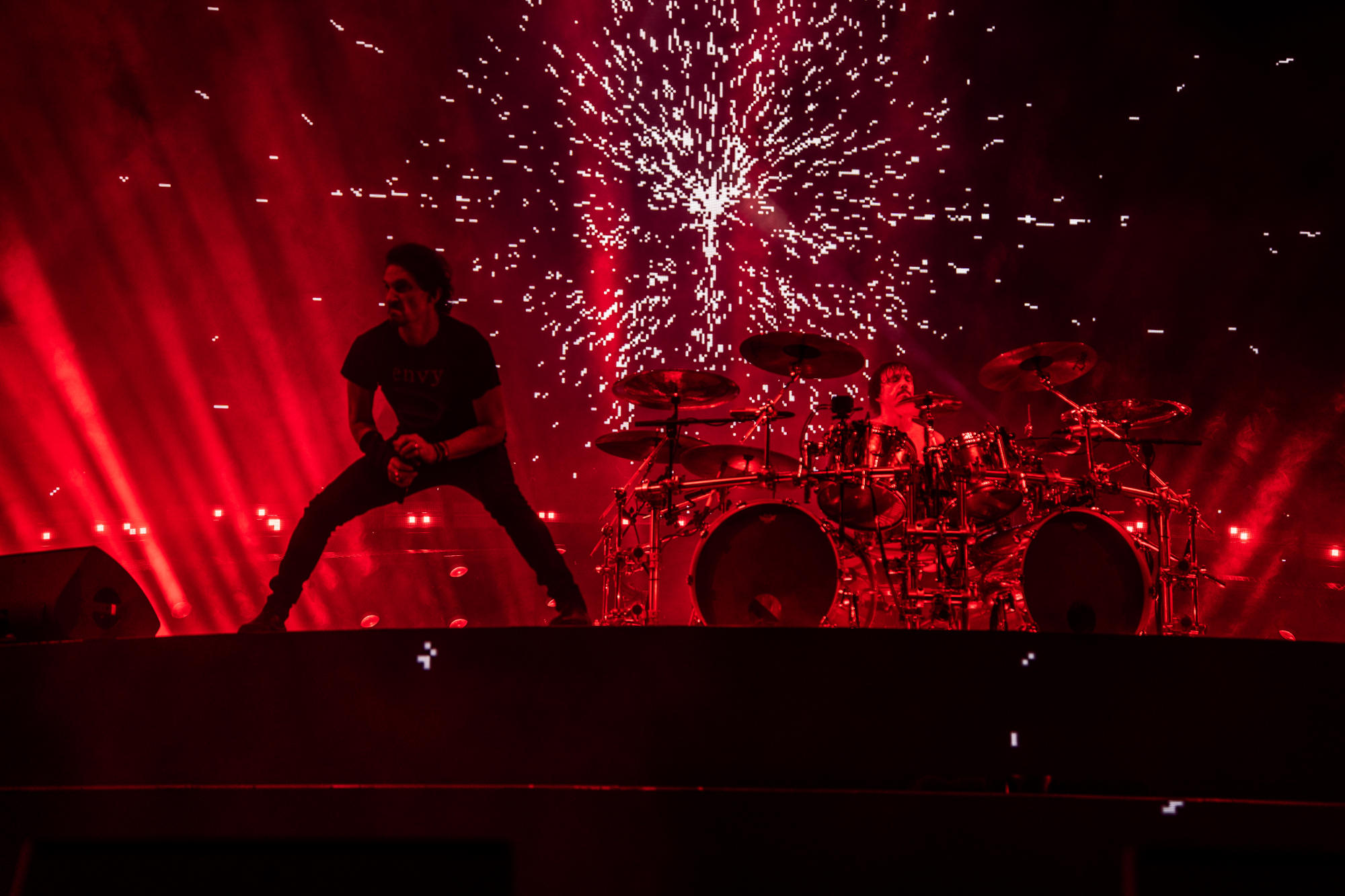 Le show était massif, chirurgical, une démonstration de force où chaque morceau semblait avoir été pensé pour frapper un peu plus fort que le précédent. Le groupe a repris tout ce qui a fait leur succès, en passant par tous les albums. Nous avons même pu revivre la cérémonie d'ouverture des Jeux Olympiques de Paris avec le morceau Mea Culpa mais contrairement à d'autre date, Marina Viotti n'a pas pu être présente car restée de l’autre côté de la frontière pour son concert à Zurich. Une absence remarquée, mais pas handicapante.