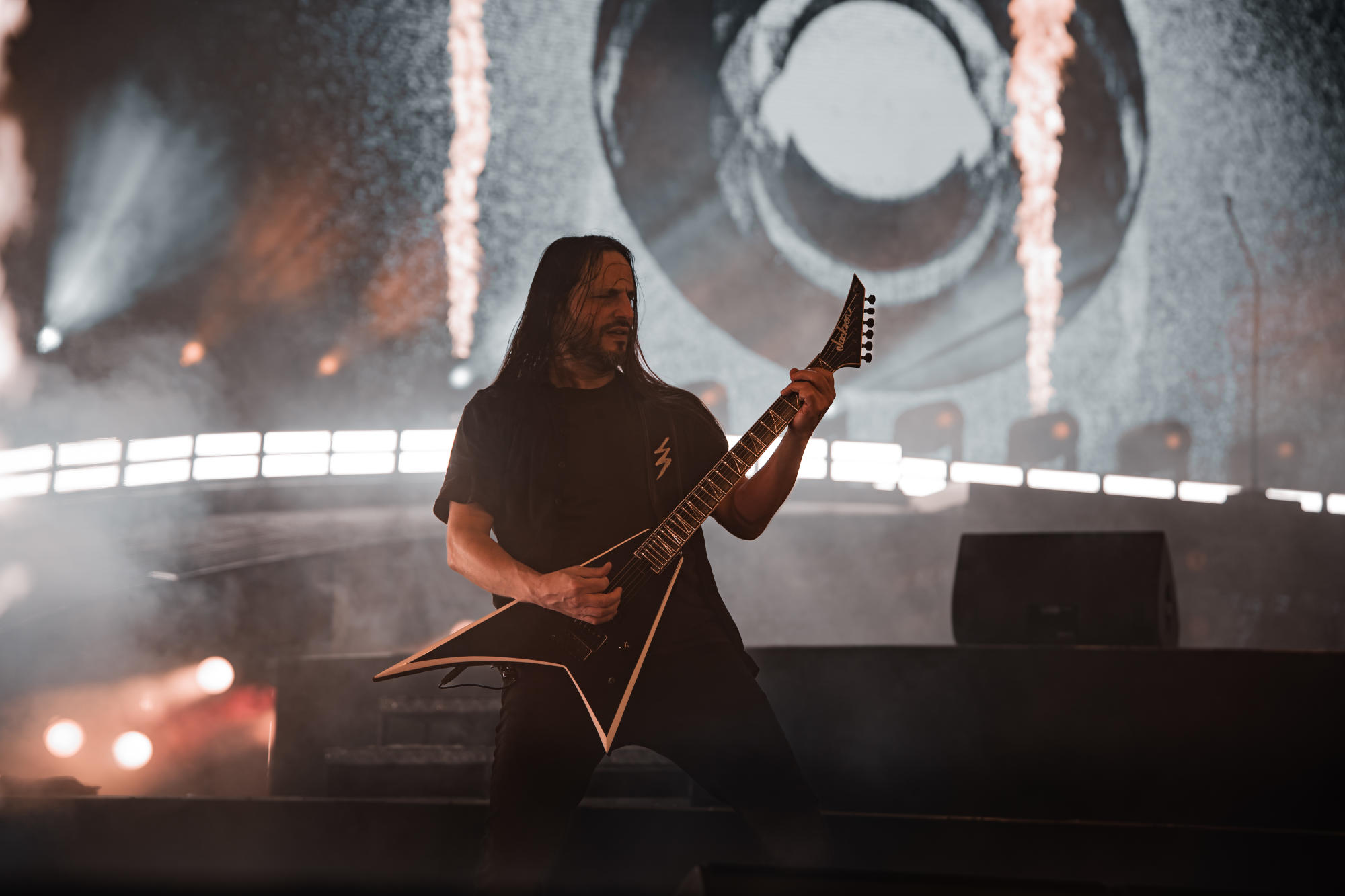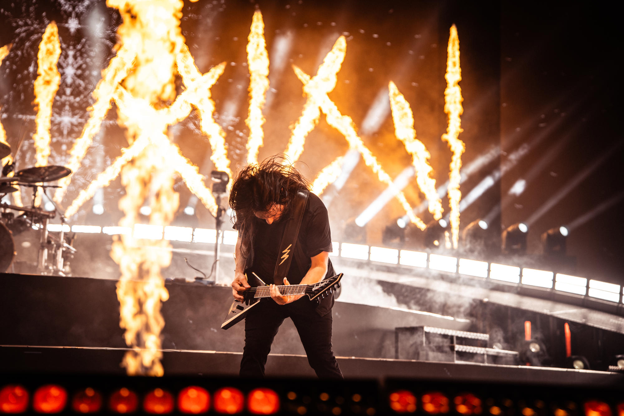 Côté scénographie, on n’était pas en reste, tout en mêlant pyrotechnie et jeux de lumières puissants pour accompagner les riffs et la double pédale de Mario.