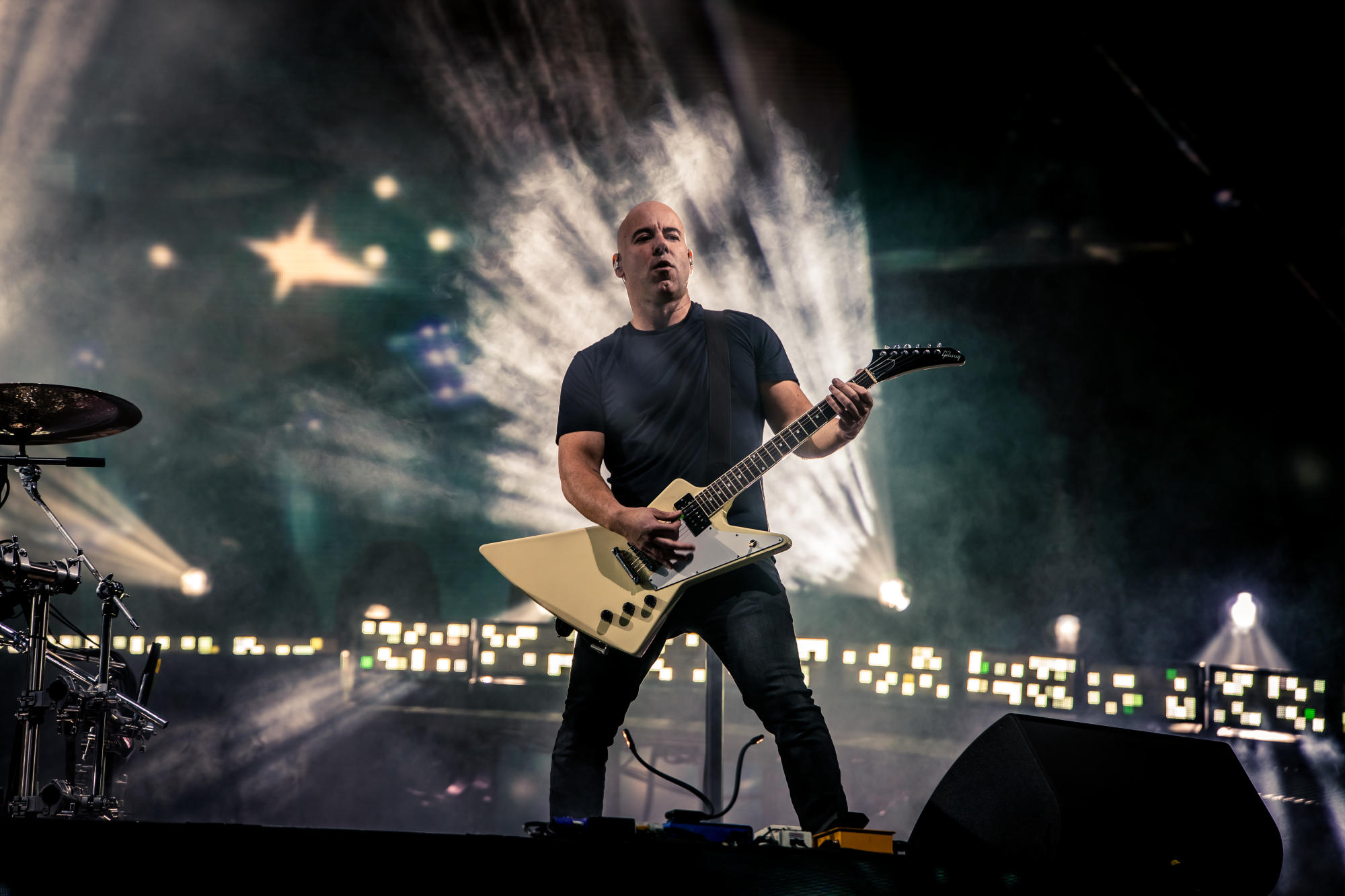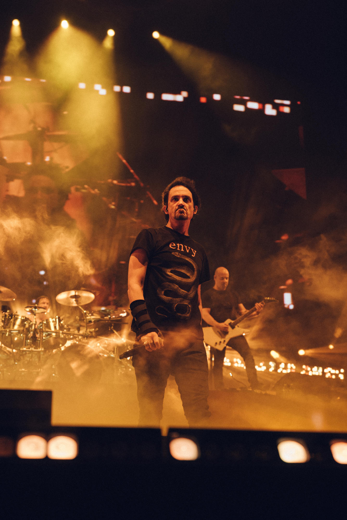 À cause de son problème au poignet, Joe Duplantier n'a pu prendre sa guitare que sur 3 morceaux, mais il a assuré une prestation vocale à faire haranguer la foule ce qui compensait largement.