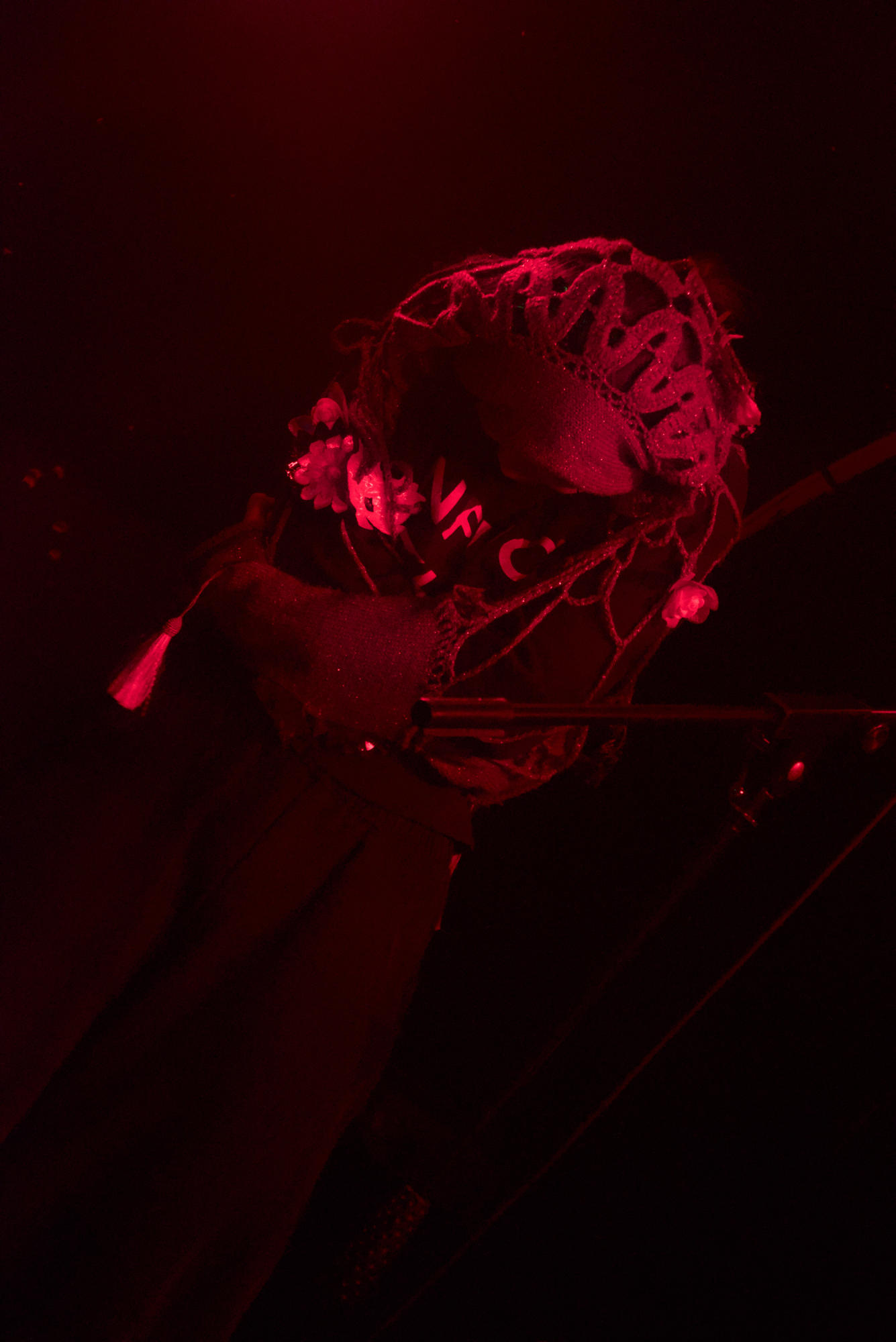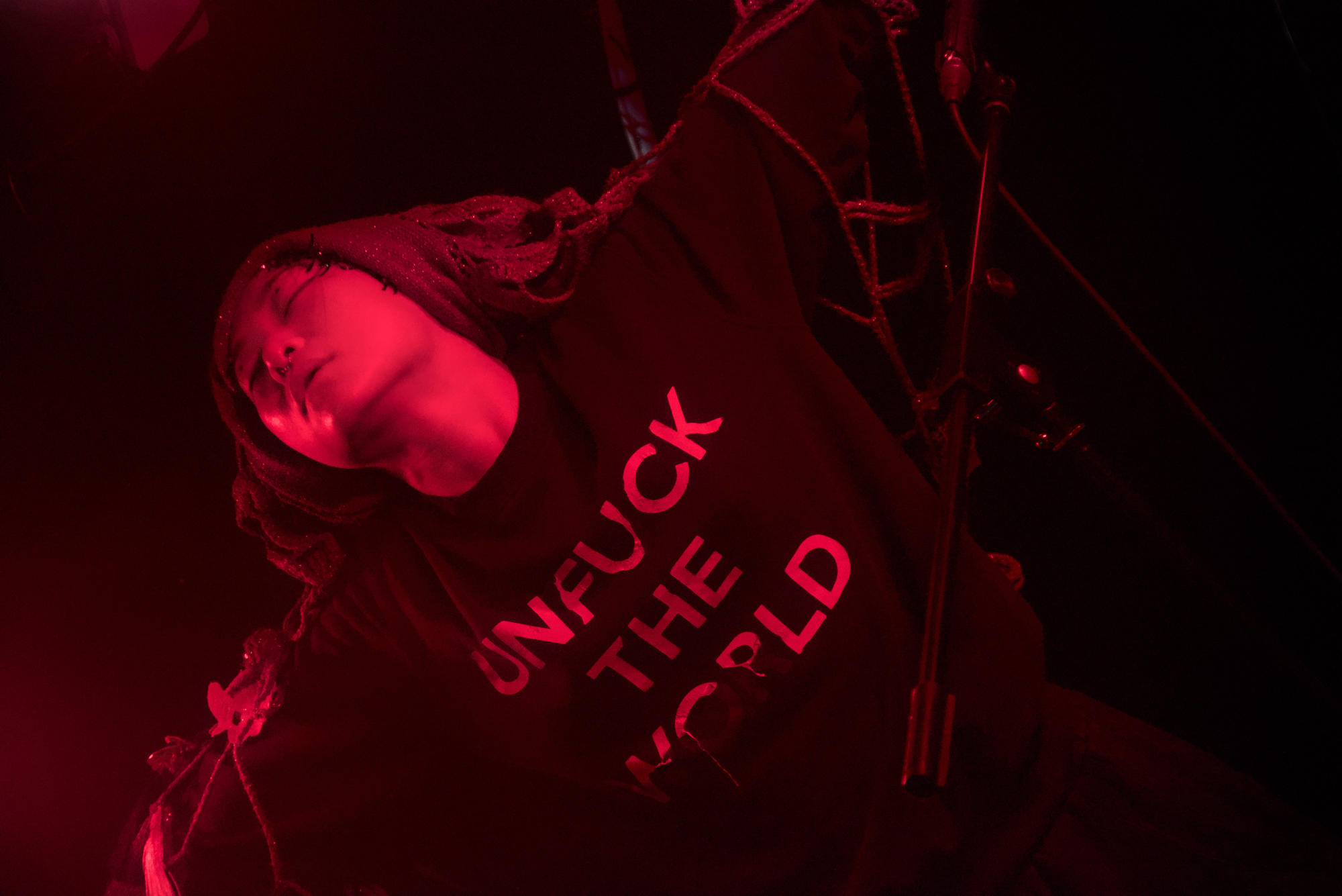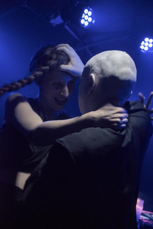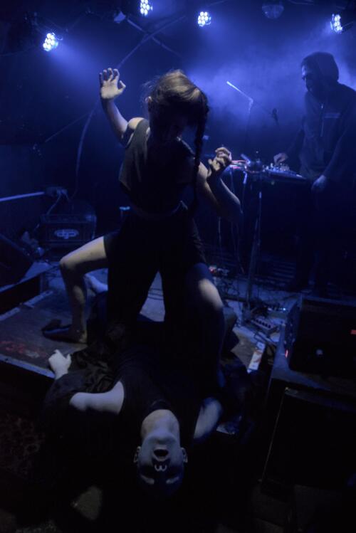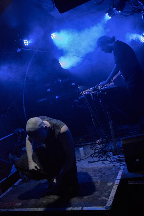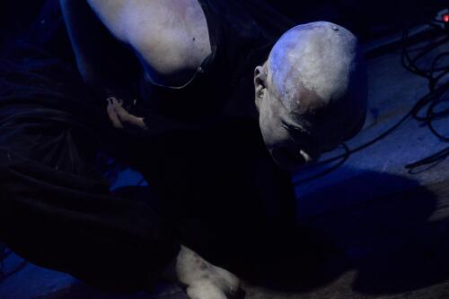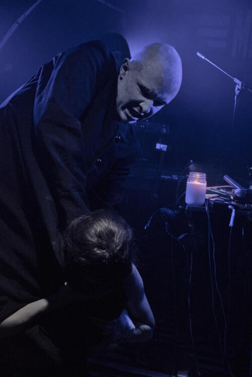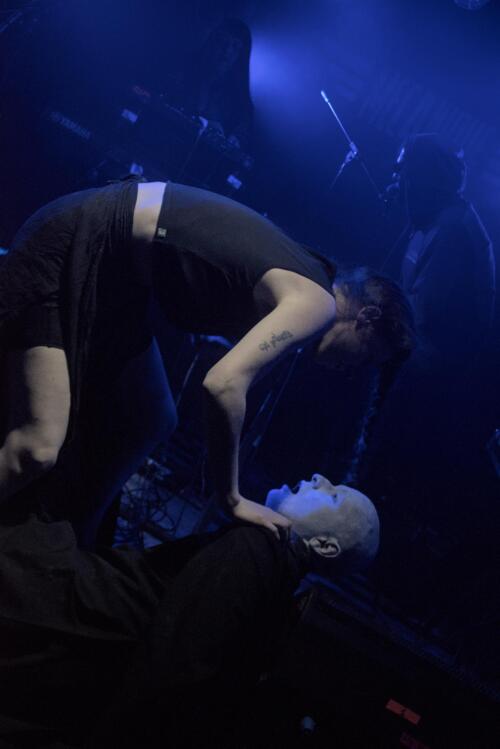 Un jeu malsain qui se passe majoritairement dans la fosse, bousculant et perturbant le public, le rendant témoin muet de ce qu'il se passe. Un moment fort et perturbant assurément qui se joue en parfaite osmose avec la musique expérimentale qui nous chatouille les oreilles.