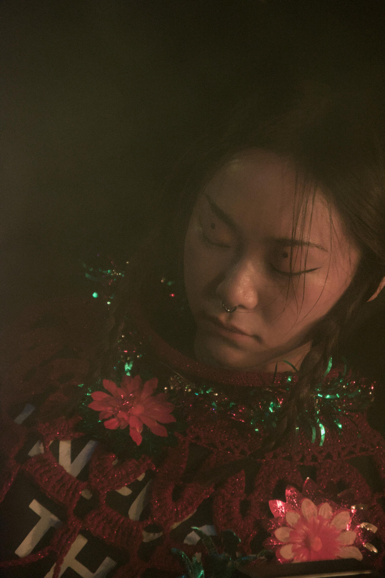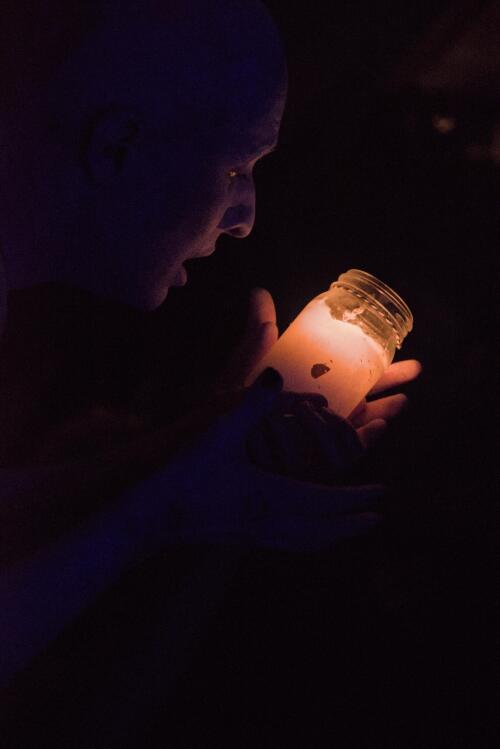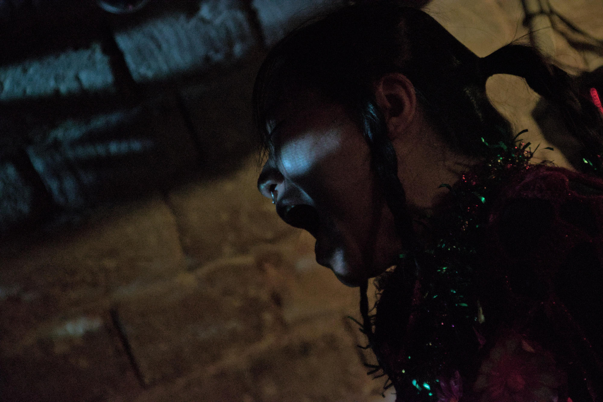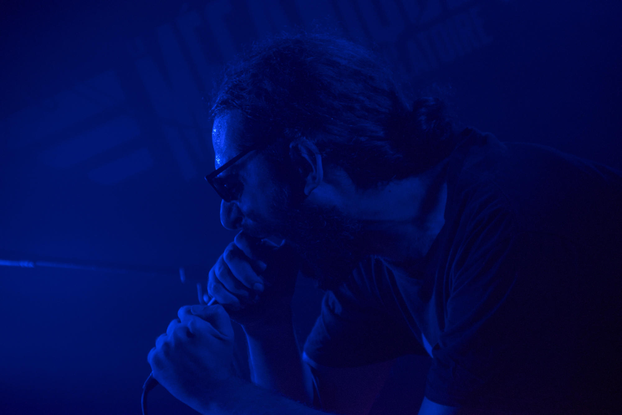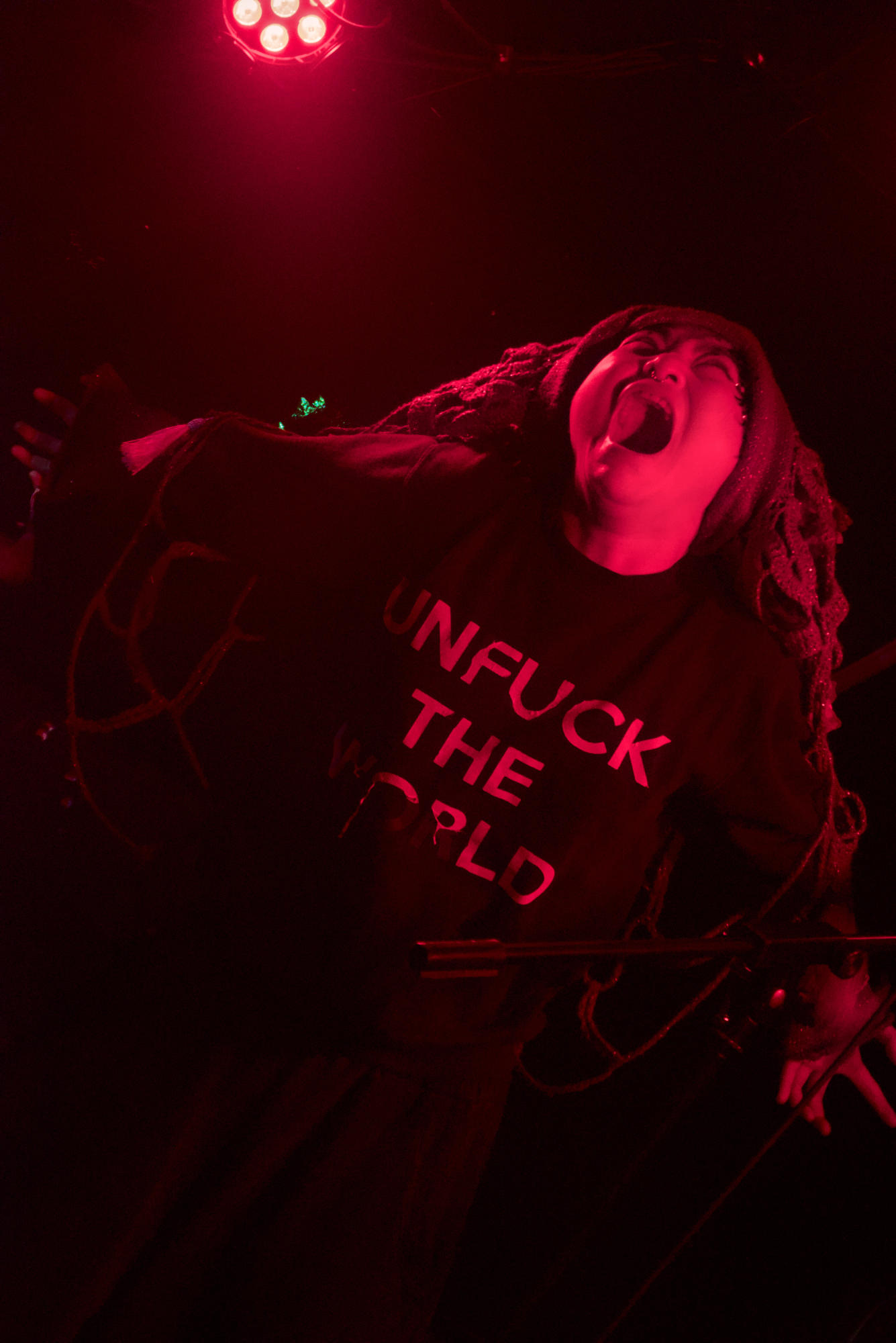 Un jeu malsain qui se passe majoritairement dans la fosse, bousculant et perturbant le public, le rendant témoin muet de ce qu'il se passe. Un moment fort et perturbant assurément qui se joue en parfaite osmose avec la musique expérimentale qui nous chatouille les oreilles.