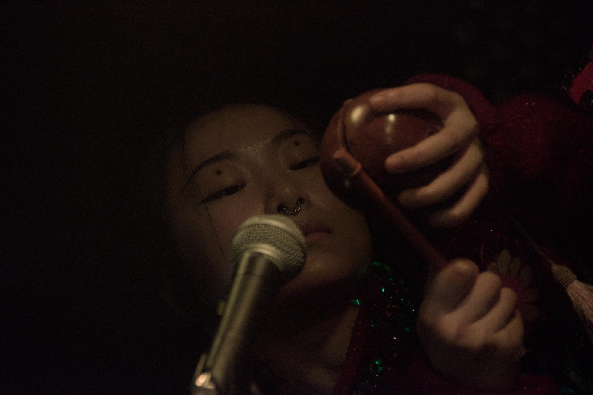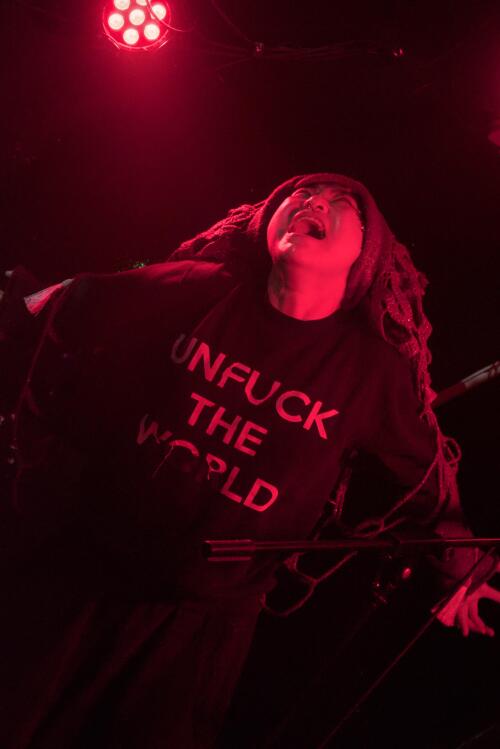 Cette fois-ci, les deux personnes sur scène sont les seuls personnages que nous verrons pendant ce concert. Un concert qui n'en sera pour autant moins intense, tellement l'artiste Lane Shi Otay:Onii est charismatique sur scène !