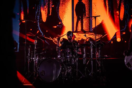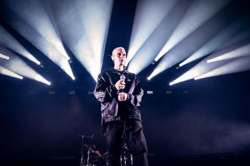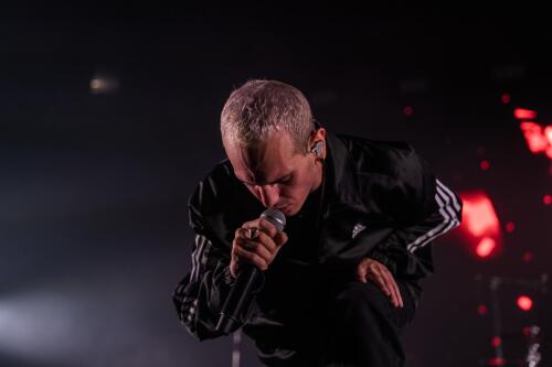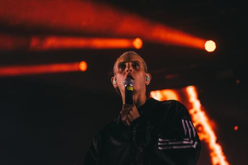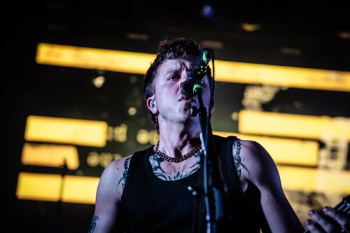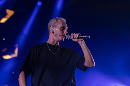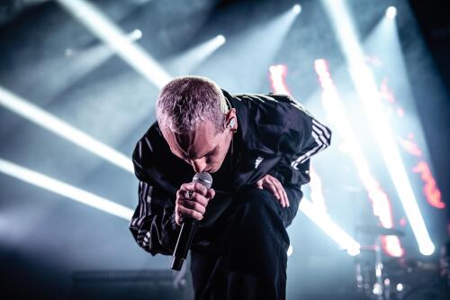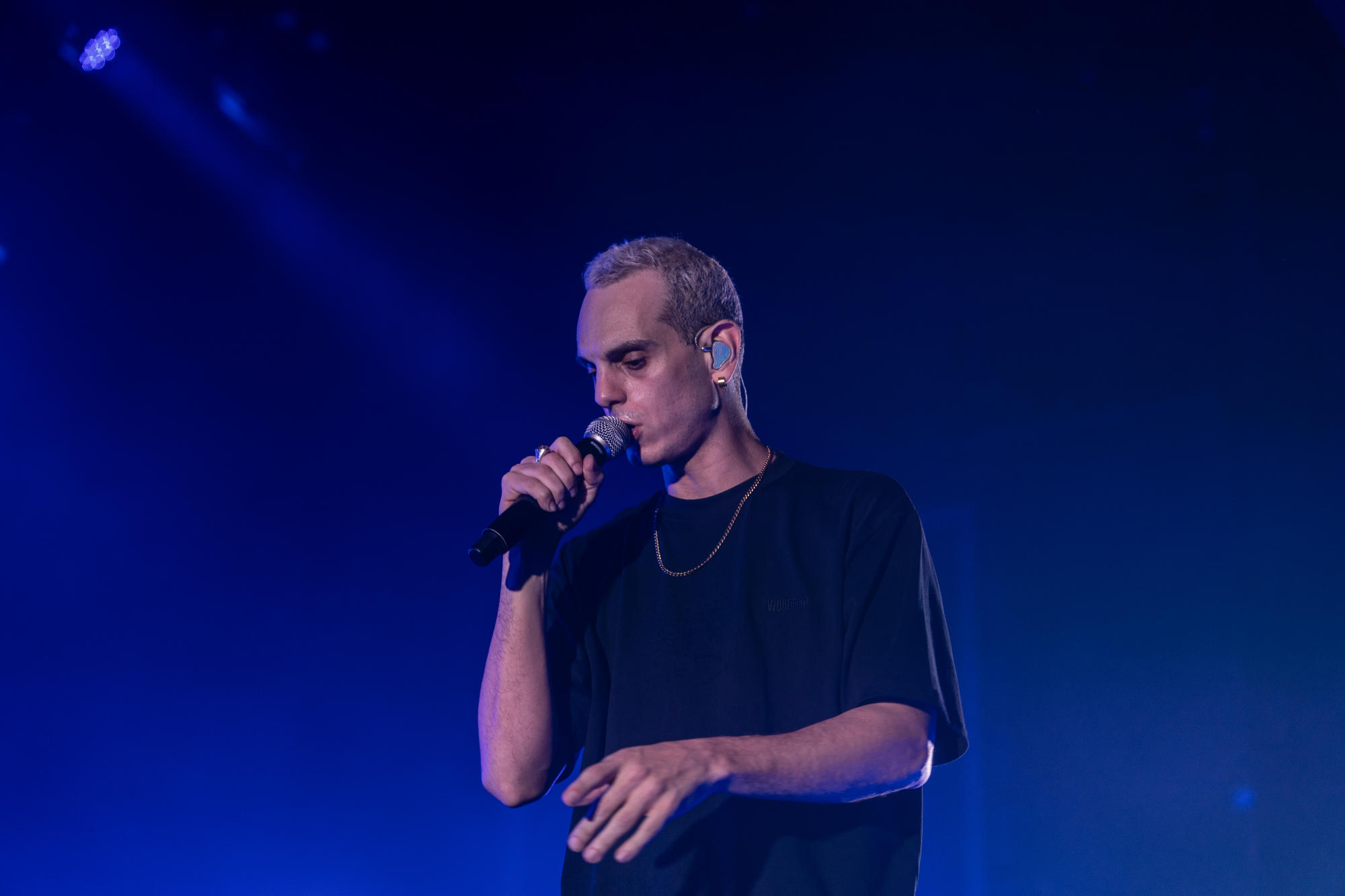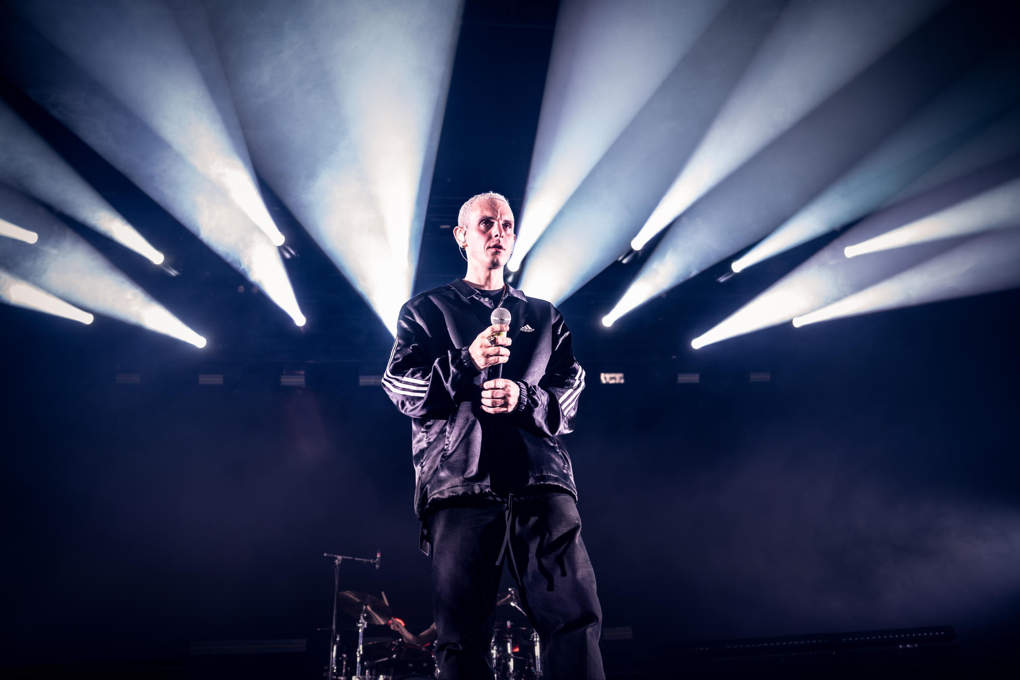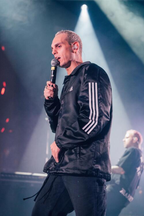 Florent Salfati, en patron, mène la danse avec une intensité impressionnante. Mêlant chant parlé, rappé mais aussi une alternance entre voix claire et voix saturée. Un mix comme il sait si bien le faire.