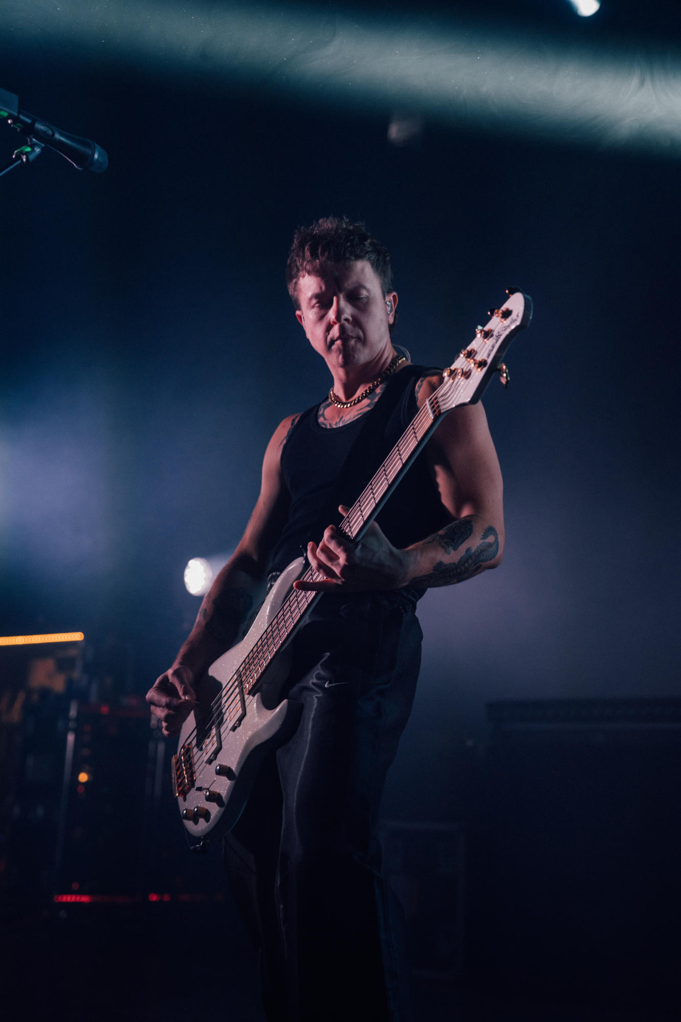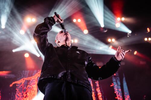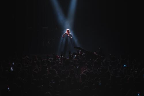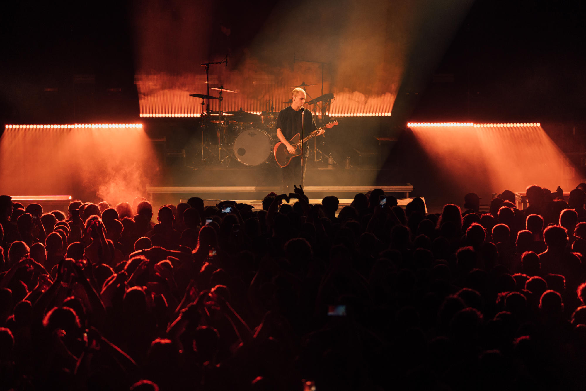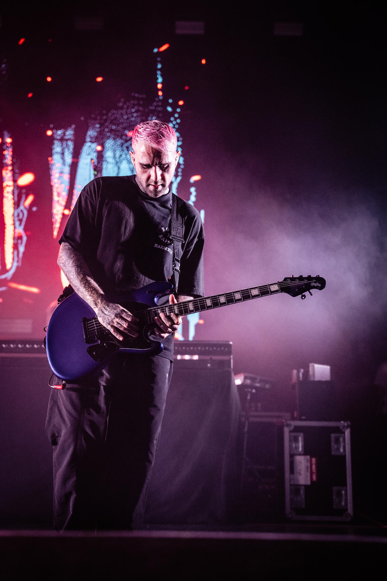 Florent Salfati, en patron, mène la danse avec une intensité impressionnante. Mêlant chant parlé, rappé mais aussi une alternance entre voix claire et voix saturée. Un mix comme il sait si bien le faire.