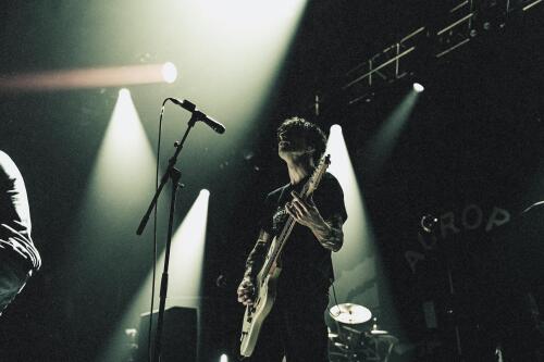 C’était ensuite au tour de Aurore de prendre possession de la scène. Entre puissance et passages plus atmosphériques, la formation propose une prestation immersive qui capte rapidement l’attention du public. Le chanteur de Soul Splitter est venu rejoindre le groupe pour performer sur une chanson en commun.
